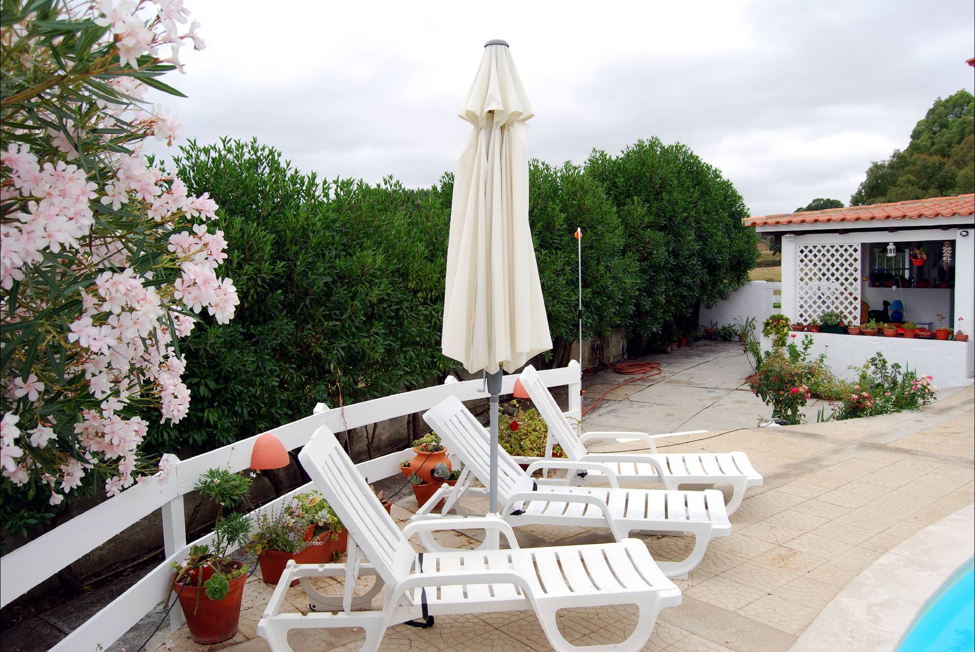 – Frigorífico com congelador (2 equipamentos : 1 no interior e outro no exterior), máquina de lavar loiça e roupa, microondas, forno, máquina café, espremedor de citrinos, chapéus de sol, espreguiçadeiras.